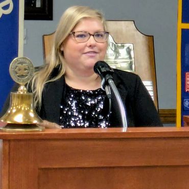 Sept 23, 2025. Program Speaker Daniel Granquist introduced today's speaker, Sara Krachinski, MCAS Assistant Director of Athletics for Michigan City Area Schools. Sara spoke about her many fund raising activities for the Athletic Program in the High, Junior High, and Elementary Schools. Funds are received through Grants, Donations, Ticket Sales and Concession Stand Sales. Projects now in the works include: