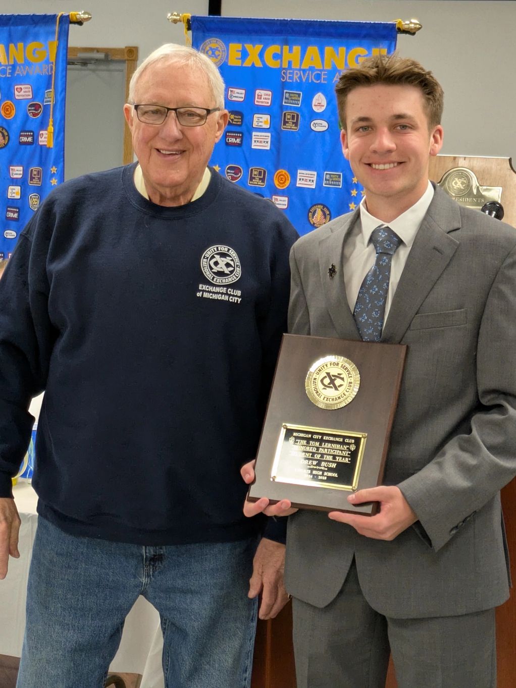 Drew shared his essay with those in attendance today. He described how he found his purpose through helping others, by holding study sessions and mentoring other students to better understand certain math concepts. He was class Valedictorian for LaPorte HS., captain of the tennis team and participated in several other activities. Drew wi