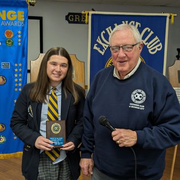 Program Speaker: Speaker Chairman for this week’s meeting Phil Freese, explained today’s program regarding recognizing three students today for their winning scholarship essays. All three students will receive a $500 check and an engraved plaque from the Club. The two Students of the Year were judged based on five separate categories: